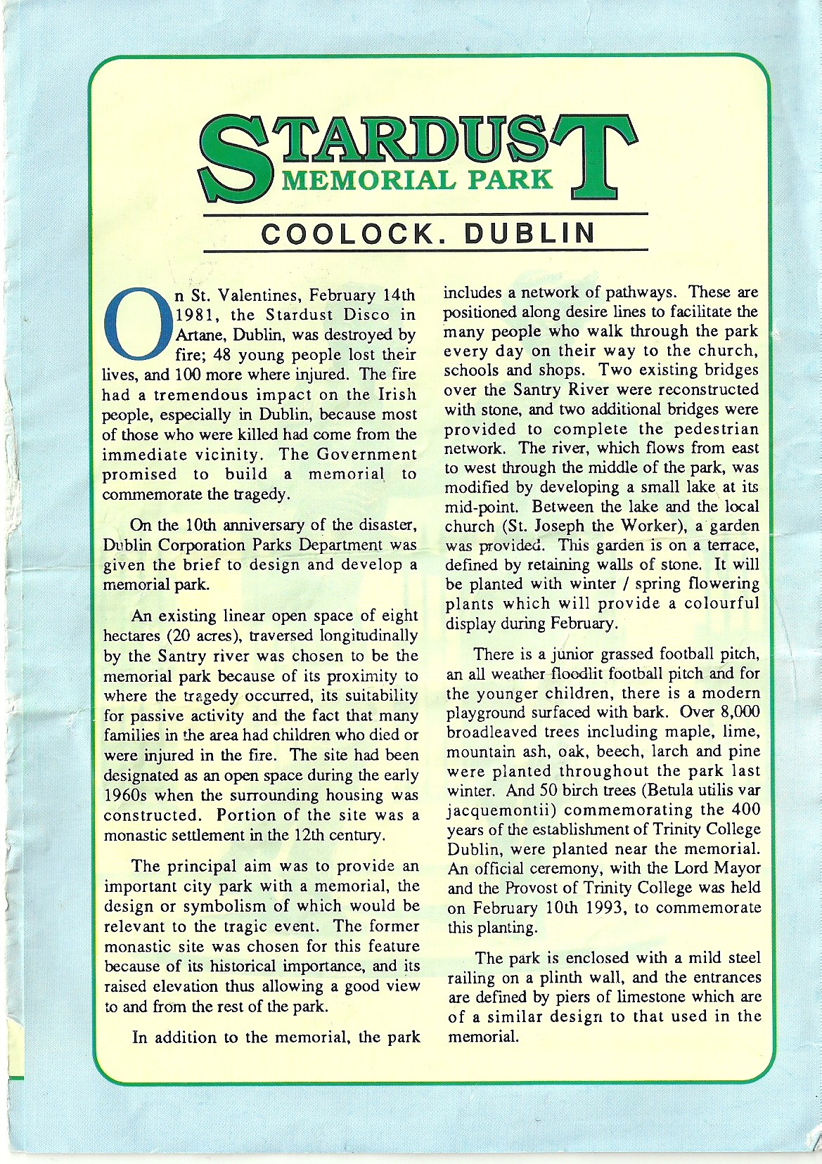 Stardust Memorial Park Leaflet (1993)